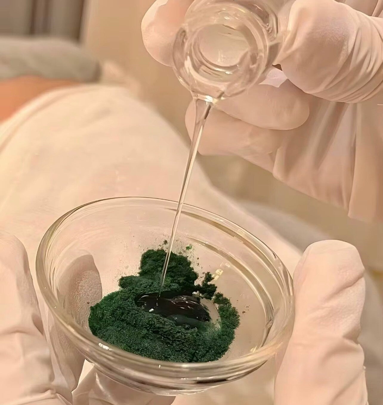 - Mezcla el polvo de algas con el activador líquido en un recipiente limpio.